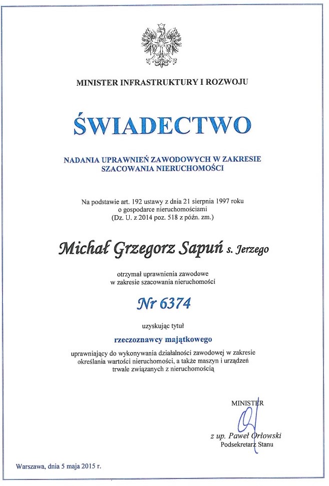 Rzeczoznawca Majątkowy z długoletnim doświadczeniem na rynku nieruchomości.